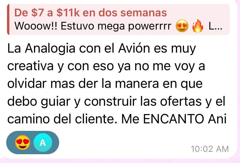 📌 Identificar un nuevo ángulo de ventas más potente que no habían visto y llevarlas a generar meses de $8K+ USD
