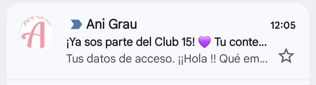👇 Busca este correo colocando en el buscador las palabras «anigrau» o «Club 15» o revisa la carpeta de promociones/spam: